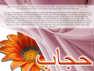 “ Dan katakanlah kepada para perempuan yang beriman, supaya menyekat pandangan mereka ( daripada memandang yang haram), dan memelihara kehormatan mereka, dan janganlah mereka memperlihatkan perhiasan tubuh mereka kecuali yang zahir daripadanya; dan hendaklah mereka menutup belahan leher bajunya dengan tudung kepala mereka; dan janganlah mereka memperlihatkan perhiasan tubuh mereka…..”
